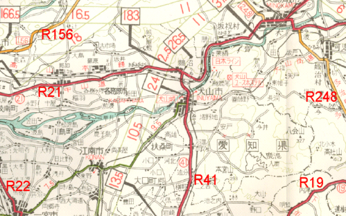 犬山橋の拡大。犬山橋はその昔、国道41号でありました。